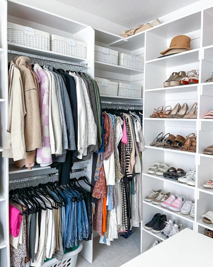 - By Item Type: Group similar items together—shirts with shirts, pants with pants—to make it easier to find outfits quickly.